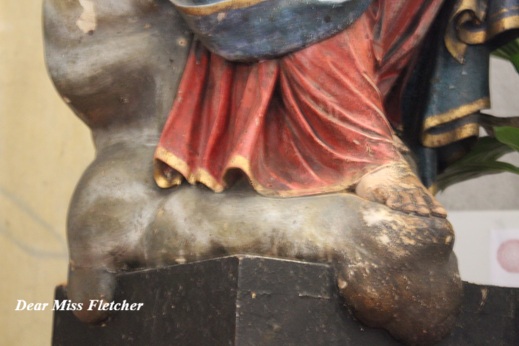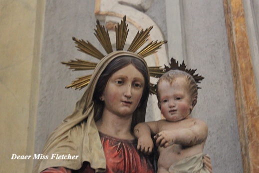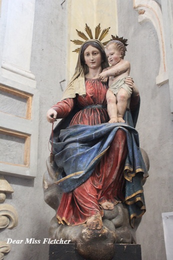 Qui, proprio accanto all’ingresso principale, è collocata una semplice statua raffigurante la Madonna con il Bambino, un’opera che trovo colma di dolcezza.