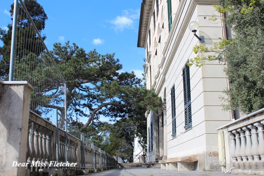 Si sale poi su per le scale e i grandi alberi svettano solenni.