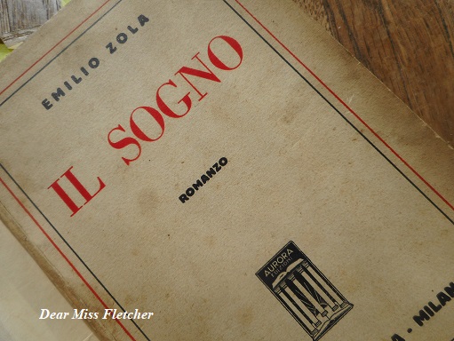 Il sogno, questo è titolo del sedicesimo volume del ciclo dei Rougon Macquart, pubblicato da Emile Zola nel 1888 e purtroppo fuori edizione, la mia copia risale al 1936 e l’ho scovata su un mercatino, ha le pagine ingiallite, separate l’una dall’altra dal suo antico proprietario con l’ausilio di un tagliacarte, è quasi priva di rilegatura, ma me la tengo stretta come un tesoro.