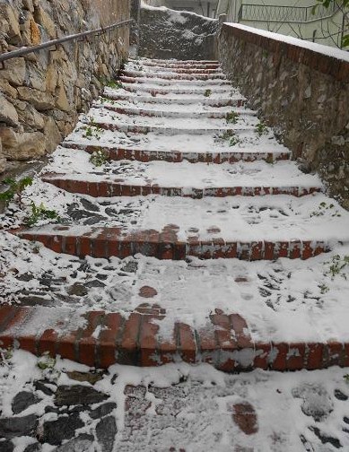 9. Ah la neve è bellissima e affascina, in un luogo di mare ancora di più…certo non vorrei mai dover scendere quelle scalette!