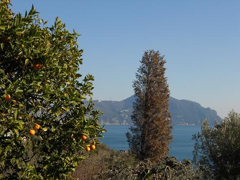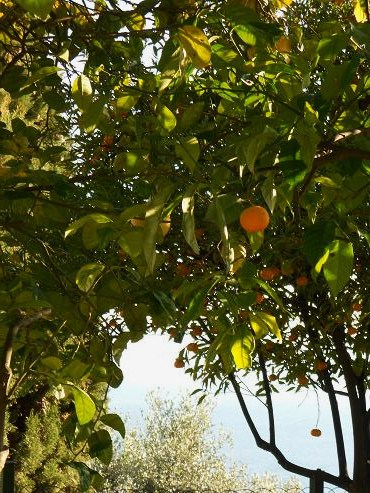 E pendono dai rami le arance mature, nell’incanto del golfo.