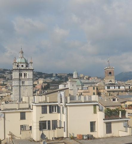 Genova dall’alto è una città unica: basta andare con l’ascensore a Castelletto per rendersene conto, ma quando si ha la fortuna di essere ospitati in una casa dei vicoli, lo spettacolo è ancora più magico. Una volta sono stata invitata in una casa di via Luccoli e già dalle finestre all’ultimo piano la vista era fantastica. Poi mi hanno fatto salire su una minuscola terrazza in cima …….al mondo: mi sentivo come un gabbiano in volo sui tetti grigi. Non si vedevano i vicoli, non si sentiva alcun rumore. Che meraviglia! Sarà per questo che una volta chi poteva si costruiva una torre in casa sua?