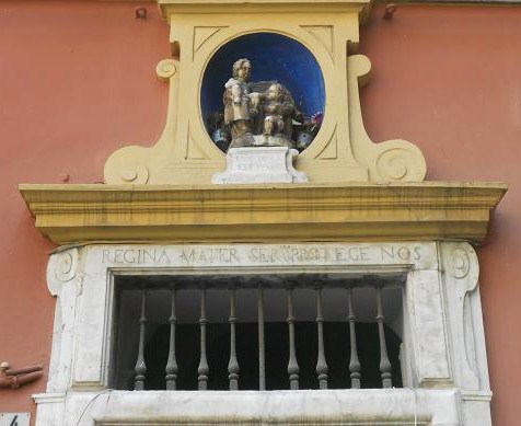 Su un portale la sacra immagine di Maria, con lei il piccolo Gesù e San Giovannino.
