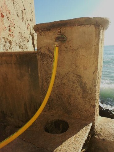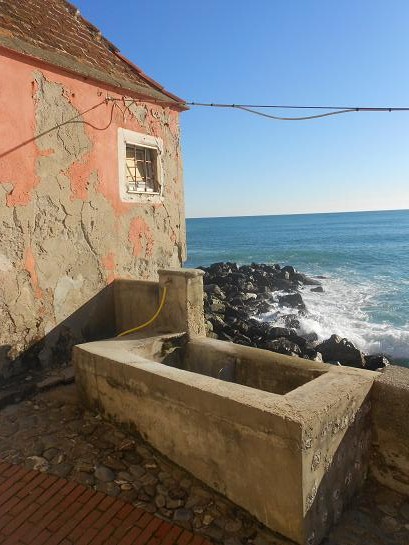 Lì, tra la creuza e la piccola spiaggia, ancora si trova il muto testimone di certe lontane fatiche che non conosciamo più, un lavatoio davanti al mare.