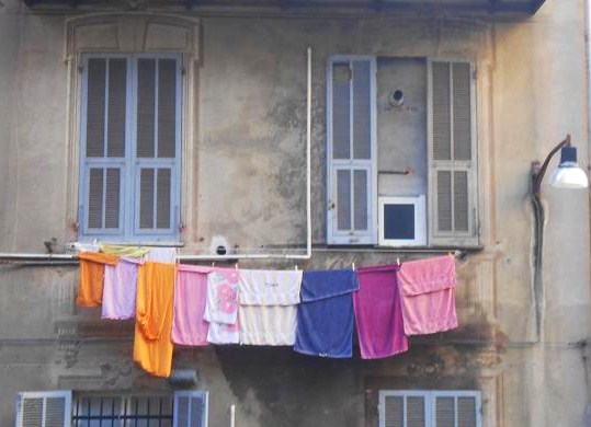 Qui, nei caruggi, dove ci sono colori, fili da stendere e panni stesi.