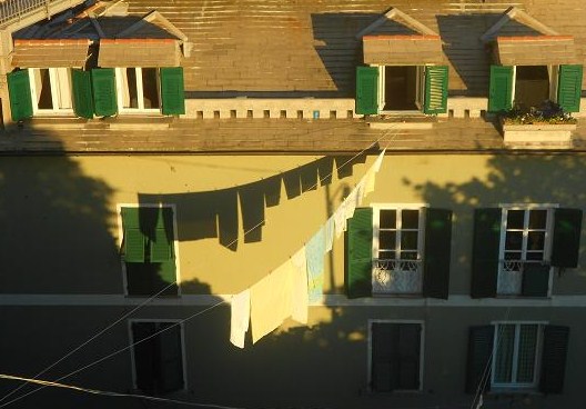 Ingegnosi i genovesi, basta una recinzione alla quale appendere un filo e voilà, ecco trovato il posto per il lenzuolo.