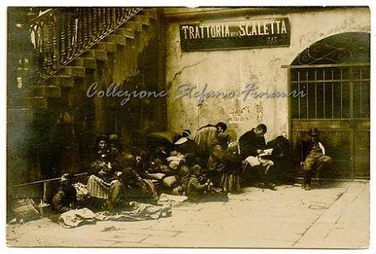 Era già passato il tempo della Trattoria della Scaletta e quell’insegna oggi non c’è più ma queste persone si misero sedute proprio lì, per terra.