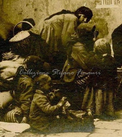 4. La tua ricostruzione da bravissima Miss Fletcher mi pare plausibile e molto interessante ma…posso dirti che mi mette una grande malinconia vedere tutte quelle persone, abbandonate a se stesse o buttate a terra, come giustamente dici, e quei bimbi con vesti povere e consunte e scalzi. Insomma pensiamo a quanto debbono aver patito, loro e tanti altri nelle stesse condizioni.