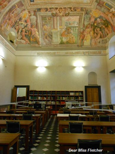 E se vorrete consultare i faldoni che contengono antichi documenti vi accomoderete nella sala di lettura.