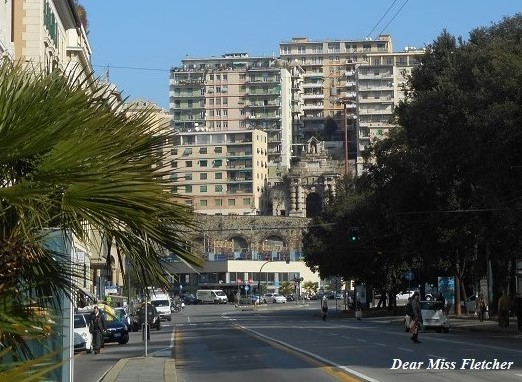 Tra la stazione Brignole e la villa di Gamba si scorge la sommità di Porta Pila.