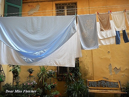 Prosegue ancora la mia passeggiata in Vico Amandorla, tra fili da stendere e persiane verdi.