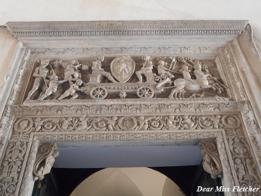Alzate gli occhi verso questo splendido portale lasciatoci dal talento di un valente scultore, l’opera è attribuita a Pace Gaggini, artista vissuto tra la fine del ‘400 e la prima metà del ‘500.
