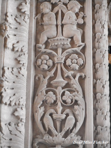 E ancora musica, putti, fiori e uccelli, un gioco continuo di linee e di curve.