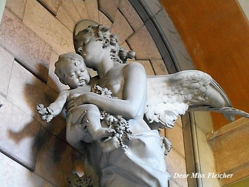 L’angelo tiene stretto al petto un bambino: quel dolce piccolino è Giovanni, il figlio troppo presto perduto dai coniugi Montebruno.