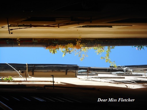 Ed ero in Via della Maddalena, ho alzato lo sguardo e sopra di me ho trovato questa prospettiva radiosa, le finestre spalancate, la striscia di azzurro e una magia di petali colorati lassù, su un terrazzino.