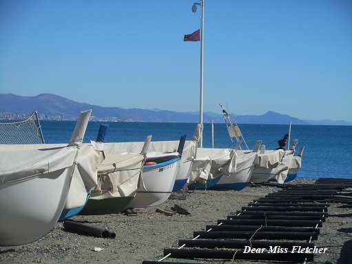 Arriveremo là grazie a una bella cartolina della mia collezione, alcuni dettagli ci conducono davanti all’azzurro, davanti al mare della Liguria dove restano ancora le barche così adagiate sui sassi.
