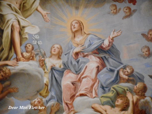 Guarda Gesù: assiso su di una nube mostra alla Madre sua i segni della passione e redenzione,Maria lo sa in quel momento di essere la prima redenta dal Signore.