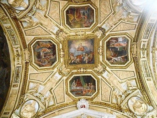Uno splendore di oro sovrasta la statua, nella volta si ammirano le Scene della vita di Maria, magnifici affreschi opera di Bernardo Castello.