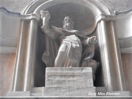 La figura del Santo si staglia nella bella edicola in Vico del Rosario della quale ebbi modo di scrivere tempo fa in questo post.