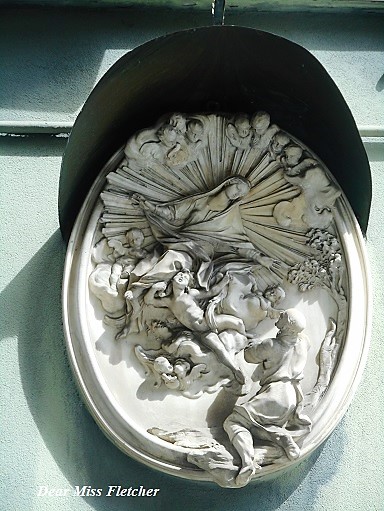 Miss, questo raffinato medaglione ricorda un po’ la scultura della chiesa della Santissima Annunziata di Portoria, anche perchè entrambe le opere sono una rappresentazione della visione della Vergine che ebbe il beato Botta…