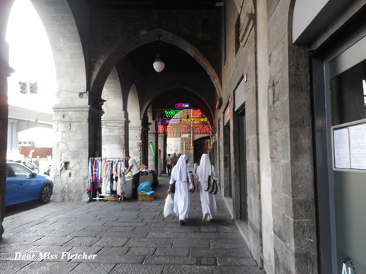 Sorelle in Sottoripa, con l’abito chiaro smosso dai passi ritmati.
