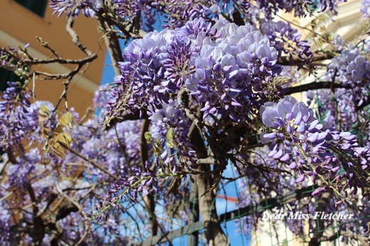 Scendendo giù per certe strade e alzando lo sguardo verso certi giardini si nota che il glicine sa creare certi antichi romanticismi perfetti e armoniosi.