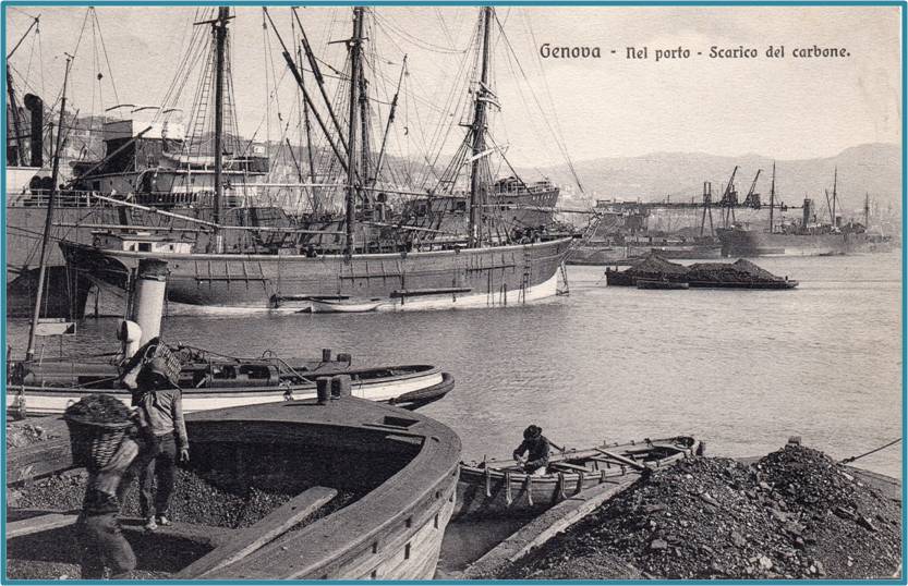 Il carbone veniva posto nei cuffini e sollevato da quelle braccia vigorose, a volte invece veniva usato un bigo posto sulla coperta del vapore e azionato da un apposito verricello.