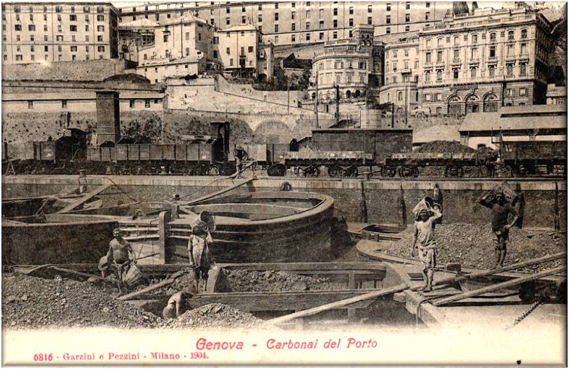 Essenziale è anche l’opera dei caricatori o cuffinanti: si occupano di portare il carbone ai piroscafi e di stivarlo in maniera corretta.